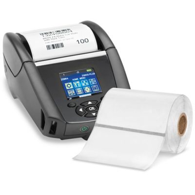 Zebra Mobile Printer Labels in Stock - ULINE Mobile Printer Labels Mobile Printer Labels NO RIBBONS REQUIRED Print labels on the spot in warehouses, shipping departments and offices. Apply direct thermal labels to corrugated, metal or plastic. Perforated between each label. 3/4" core. Only for use with Zebra Mobile Printers.