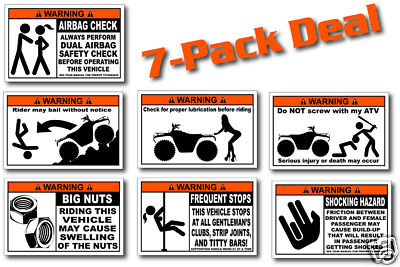 215 Decals, Graphics, Skins & Stickers ATV Warning Sticker Pack - Funny ... This item: 215 Decals, Graphics, Skins & Stickers ATV Warning Sticker Pack - Funny Vinyl Decal Off Road MEGA MUD Sexy 4x4 Set $7.29 About to Do Something Stupid Vinyl Decal Sticker $2.79 Funny Warning Sticker - Attention Beer Fall Out Caution Drink Drinking Party Vinyl Decal for Car Truck Vehicle $2.95