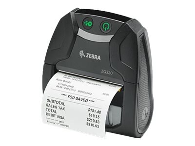 Zebra ZQ32-A0E02T0-00 ZQ320 Outdoor Mobile Receipt Printer Then the Zebra ZQ32-A0E02T0-00 delivers. Available in 3 inch width, the ZQ320 Series mobile printer has a slim profile and sleek appearance, plus best-in-class rugged specifications, Bluetooth 4.0 wireless connectivity and patented battery technology for full-shift power.