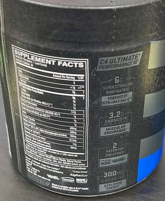 Some Possible C4 Pre-Workout Side-Effects | SHL - SafeandHealthylife C4 Pre-Workout Side-Effects. The following are some adverse effects that users may experience: ... check a product's label for certain things. Ensure that you understand what specific words mean on the ingredient list. ... The Ultimate Guideline When Choosing an In-home Nurse Care Provider for Your Elderly September 6, 2022. C4 Ultimate by Cellucor: Lowest Prices at Muscle & Strength Ultimate Energy: Caffeine Anhydrous, 300mg - Caffeine is a well-studied stimulant that has numerous energy, performance, and even thermogenic benefits. The amount of caffeine in C4® Ultimate has been clinically shown to support an increase in power output and aerobic exercise capacity.* Cellucor C4 Ultimate Pre-Workout | Dick's Sporting Goods Product Features. Pre-workout with clinically studied ingredients and cutting-edge formulas. Delivers energy you can feel. For powerful pumps, muscular endurance, extreme focus. No artificial dyes or flavors. Fully transparent labels. No proprietary blends. Innovative ingredients and enhanced formulas. Featuring NITRAMAX (NO3-C)
