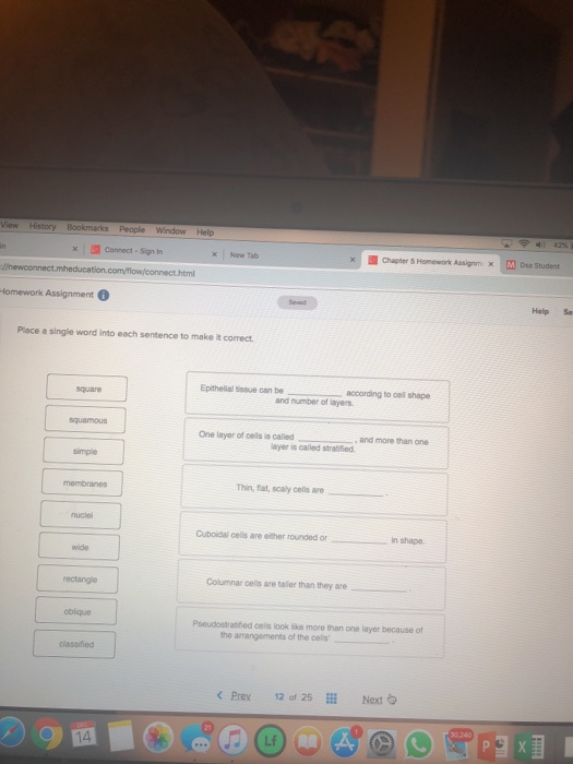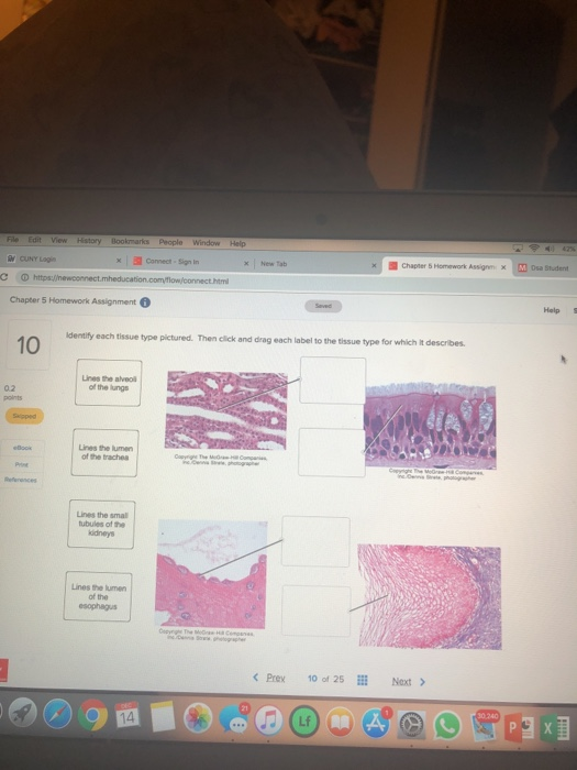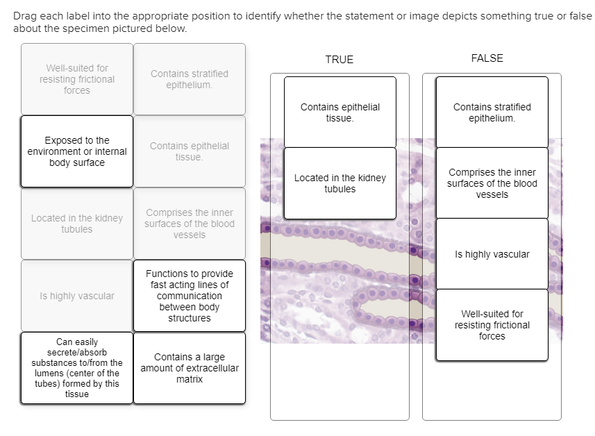 The Anatomical Regions of the Body - dummies The anatomical regions (shown) compartmentalize the human body. Just like on a map, a region refers to a certain area. The body is divided into two major portions: axial and appendicular. The axial body runs right down the center (axis) and consists of everything except the limbs, meaning the head, neck, thorax (chest and back), abdomen, and pelvis. The appendicular body consists of appendages ... Connect Homework Ch. 5 Flashcards | Quizlet Determine which connective tissue type each image below represents. Then click and drag the labels matching them up with the correct tissue type. Match each epithelial tissue type with its appropriate location in the body. Consider the two different ways that tissues can change. Then click and drag each scenario into the correct category. 4 Types of Tissues in Human Body and its Functions - Study Read The tissue consists of cells like fibroblasts, fat cells, macrophages, leukocytes, plasma cells, and mast cells. Their main role in the body is to. Protect. Transport and. Give Binding support. These are of many types like adipose tissues, reticular tissue, etc. This connective tissue is of different types as. quizlet.com › 578134211 › quiz-3-study-guide-flash-cardsQuiz #3 Study Guide Flashcards | Quizlet Drag each label into the appropriate position to match the tissue characteristic to its class. muscular tissue heavily vascularized which denoted high rates of energy consumption, excitable cells that are cylindrical branching or spindle shaped, provides movement of the body segments as well as movements through the body nervous tissue