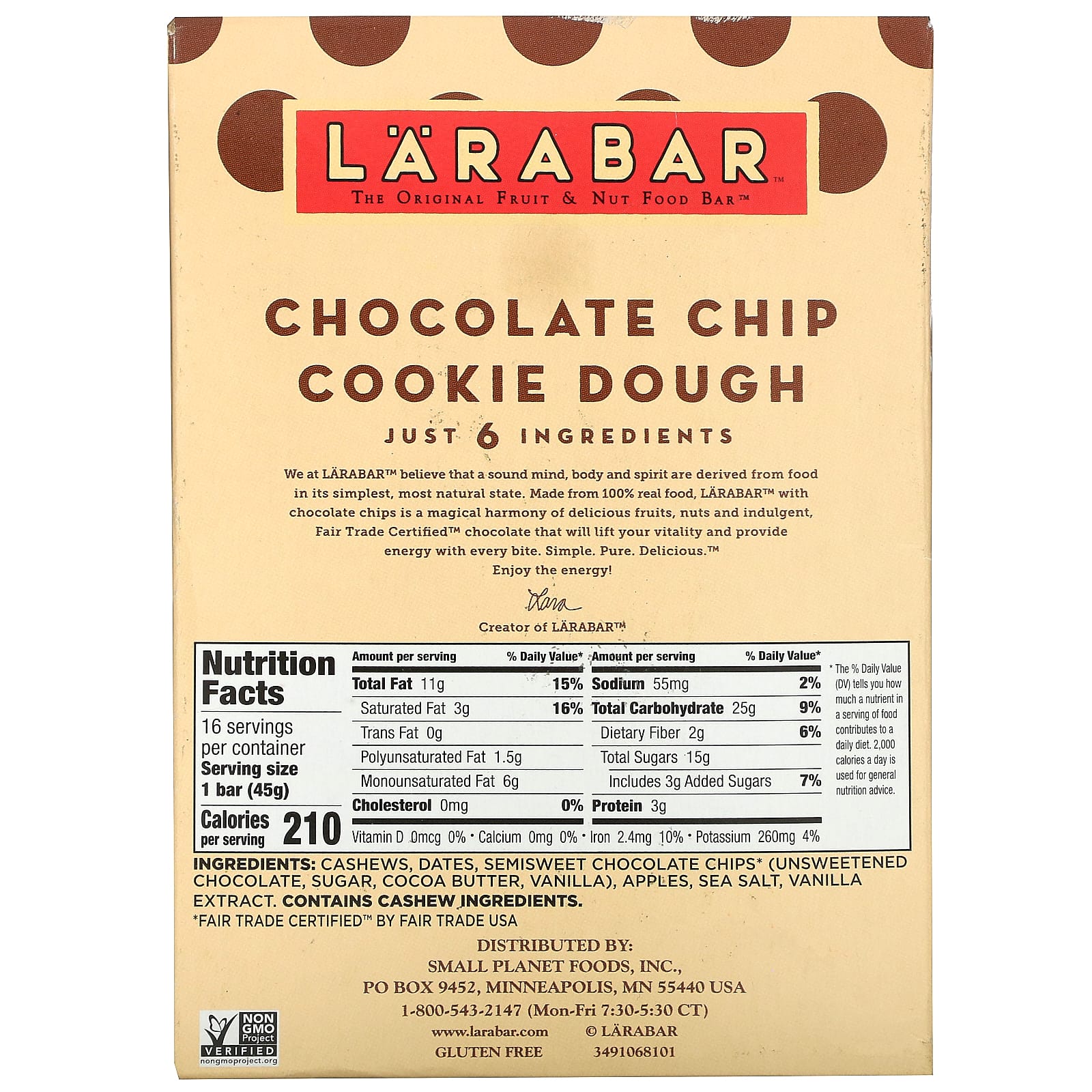 Larabar, The Original Fruit & Nut Food Bar, Chocolate Chip Cookie Dough, 16 Bars, 1.6 oz (45 g) Each