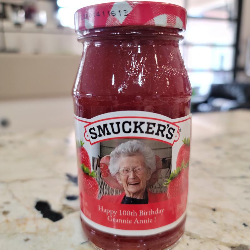 Getting Your Face on a Smucker's Jar... - The Deli Sponsored by Smucker's, the celebrants' photos are superimposed on a Smucker's jelly jar label, and Scott tells a little something about the honoree. The information on the website stated that the forms had to be submitted at least six weeks prior to the actual birthday. Since Mam-ma's birthday was November 5th, I sent the forms in early September.