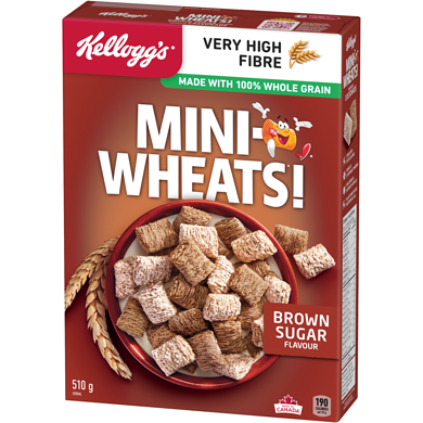 Mini-Wheats* | Kellogg's Canada Mini-Wheats* Maple Flavour Cereal Mini-Wheats* Cereal, Blueberry Flavour Mini-Wheats* Brown Sugar Flavour Cereal Big Food for Big Days :30 Watch on Big food for full cars and full schedules. Kellogg's* Mini-Wheats* cereal is made with 100% whole grain wheat, packed with great taste and high in fibre. Recipe Apple Cheese Muffins