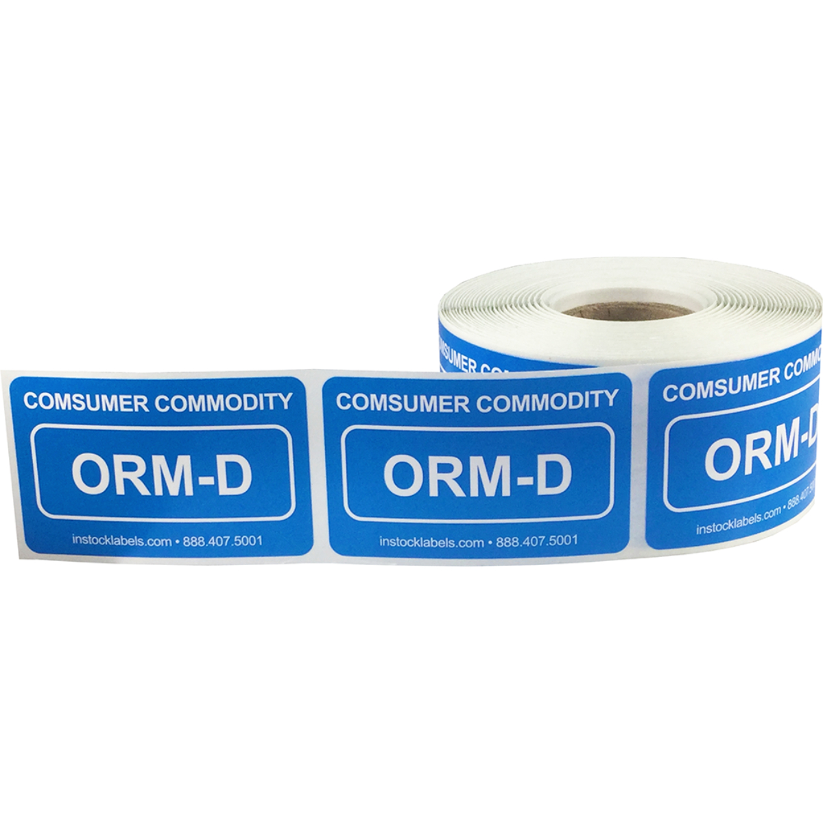 Blue Consumer Commodity ORM-D 500 Count - In Stock Labels ORM-D labels for consumer commodity. They are 1.5" x 2.375" and made with blue eco-friendly print. 500 per roll and we ship now.