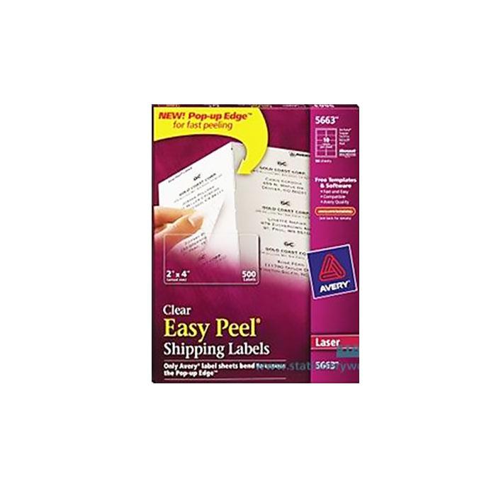 Avery® 5663 2" x 4" Easy Peel Matte Clear Shipping Labels - 500/Box Shop Avery® 5663 2 inch x 4 inch Easy Peel Matte Clear Shipping Labels - 500/Box. In stock at a low price and ready to ship same day from WebstaurantStore.