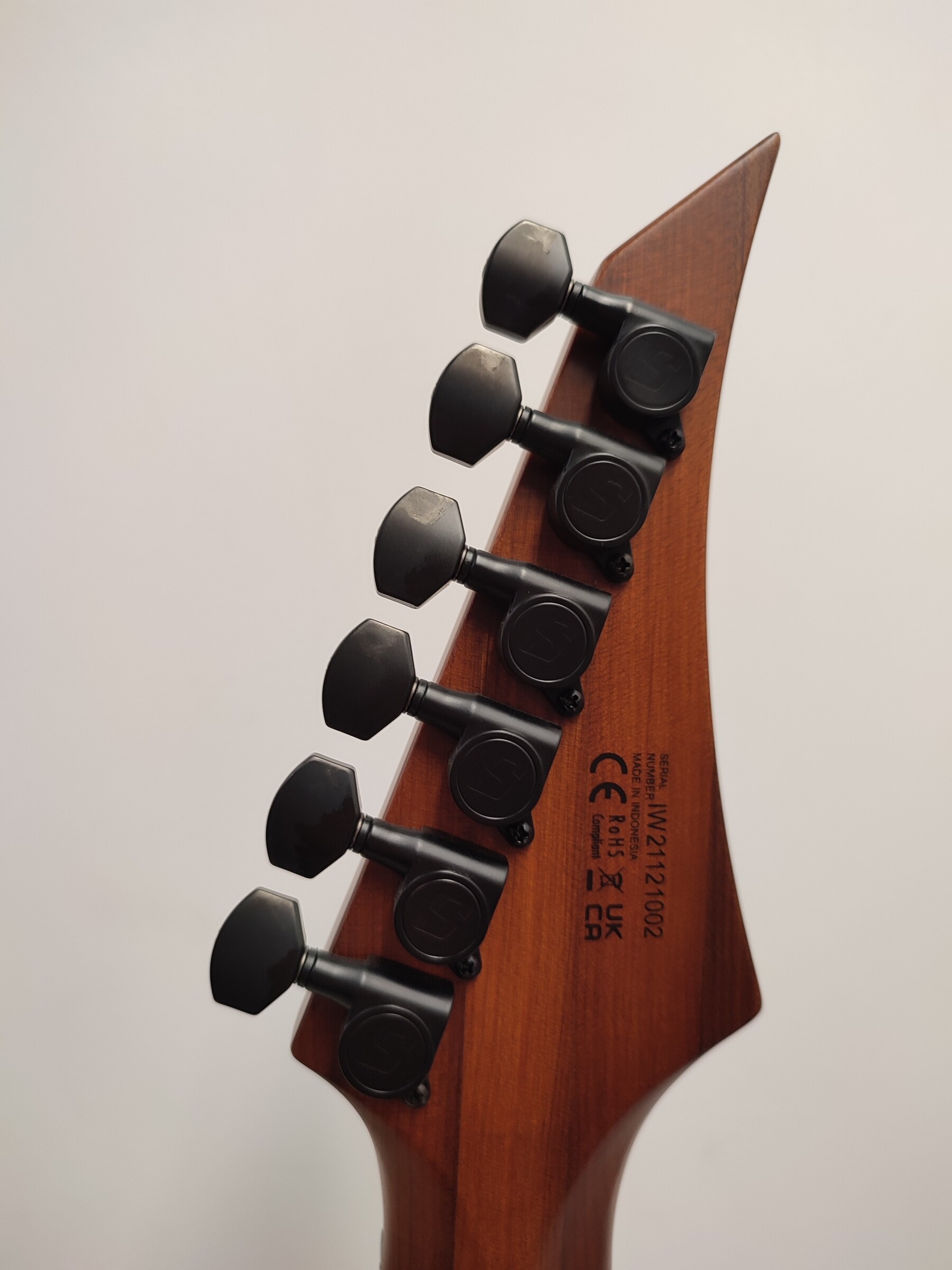 Ibanez RGIR20BE Iron Label - Walnut Flat | Sweetwater Ibanez RGIR20BE Solidbody Electric Guitar Features at a Glance: Comfortable, resonant mahogany RG body 3-piece maple/bubinga Nitro Wizard neck is ultra-stable Bound rosewood fingerboard with 24 jumbo frets plays fast and smooth EMG 60 and 81 pickups deliver tried and true metal tones Master volume, tone, and 5-way blade