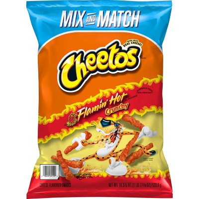 Calories in Flaming Hot Cheetos - Calorie, Fat, Carb, Fiber, & Protein ... Flaming Hot Cheetos (1 oz) Calories: 170, Fat: 11g, Carbs: 15g, Protein: 2g Show full nutrition information Baked Flaming Hot Cheetos (34 Pieces Per Serving) (1 serving) Calories: 130, Fat: 5g, Carbs: 19g, Protein: 3g Show full nutrition information Flaming Hot Cheetos (1 serving) Calories: 200, Fat: 0g, Carbs: 0g, Protein: 0g How many calories is a big bag of Cheetos? - Short-Fact The "new bigger size" bag of Flamin' Hot Cheetos contains 3 3/4 oz., or nearly 680 calories, 44 grams of fat, and 40 percent of day's recommended sodium, according to the package nutritional label. How many calories are in 1 hot Cheeto? CHEETOS Crunchy FLAMIN' HOT Cheese Flavored Snacks How many grams are in a large bag of Cheetos?