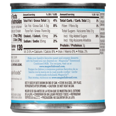 Sweetened Condensed Milk (Pack of 2) - Walmart.com Sweetened Condensed Milk, 10.5 oz. - Creamy Baking Ingredient Made From Fresh Milk For Confections and Desserts - Kosher - By Baker's Choice 3+ day shipping Customers also considered Now $69.99 24 PACKS : Magnolia Sweetened Condensed Milk - 14 oz 3+ day shipping +9 options From $46.69 La Lechera Fat Free Sweetened (Label Only) Condensed Milk Sweetened Condensed Milk | nestleprofessionalme Made from fresh milk, NESTLÉ® Sweetened Condensed Milk has a creamy texture being the ideal ingredient to create sweet indulgences in a dessert. Learn more.