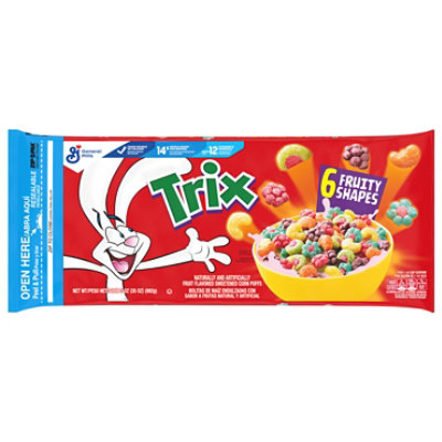 Cereal Trix® to start your day with fun | NestlĂ© Cereals TRIX cereal is fun and fruity with 6 different Fruity shapes. Made with Wholegrain and includes a source of calcium, zinc and B vitamins. Full of nutrition and fruity flavors, what a fun way to start the day! ... • Look for food labels where the word 'whole' appears in front of the name of the grain, like "whole wheat" or "wholemeal ... General Mills Trix Cereal - Shop Cereal at H-E-B General Mills Trix Cereal Highlights Nutrition and ingredients Nutrition Facts Trix About 8 servings per container Serving Size 1.25 cup Amount Per Serving Calories 160 % Daily Value * Total Fat 2g 3% Saturated Fat 0g 0% Trans Fat 0g Polyunsaturated Fat 0.5g Monounsaturated Fat 1g Cholesterol 0mg 0% Sodium 180mg 8% Total Carbohydrate 33g 12% Trix™ Cereal 25% Less Sugar Single Serve Bowlpak 1 oz A fruit flavored, sweetened corn puff cereal using natural color extract from blueberries, purple carrots, and tumeric in a ready-to-eat bowl for convenient, po Trix™ Cereal 25% Less Sugar Single Serve Bowlpak 1 oz