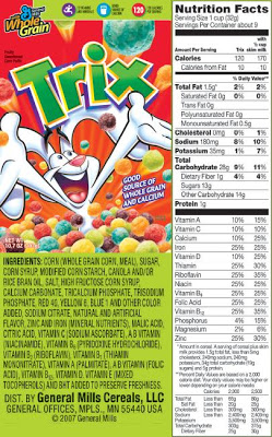 Trix cereal food label
