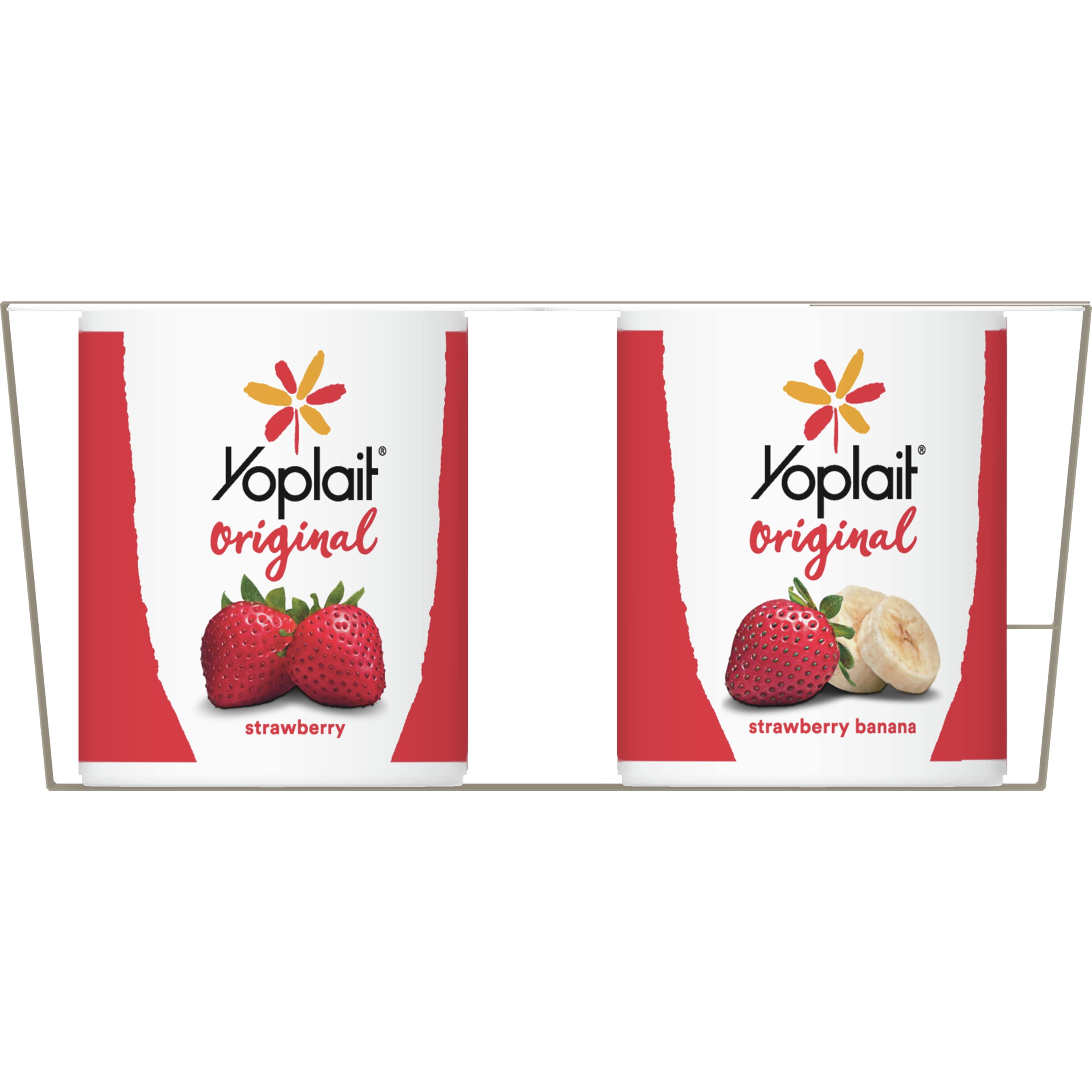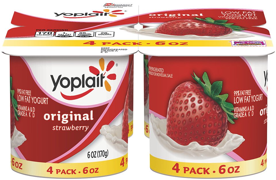 Strawberry | Original Yogurt With Real Fruit| Yoplait Yoplait is a participating Box Tops product. Yoplait brings goodness to everyday moments, one serving of yum at a time. CONTAINS MILK INGREDIENTS. One 6 oz yogurt cup of Yoplait Original Strawberry Low Fat Yogurt Smooth and creamy strawberry flavored yogurt made with live and active cultures Single serve low fat yogurt with 140 calories per serving