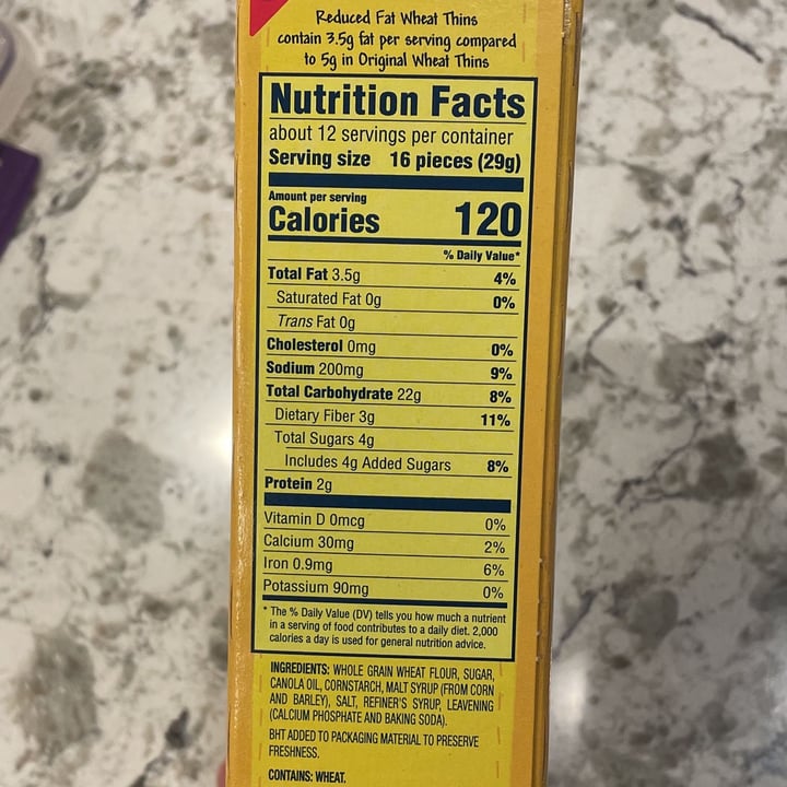 Reduced fat wheat thins calories. Reduced Fact | Wheat Thins reduced Fat Baked with 100% Whole Grain Wheat 21g whole grain per 29g serving 25% less fat than Original Wheat Thins No Artificial Flavors or Colors No High Fructose Corn Syrup WHOLE GRAIN WHEAT FLOUR, SUGAR, CANOLA OIL, CORNSTARCH, MALT SYRUP (FROM CORN AND BARLEY), SALT, REFINER'S SYRUP, LEAVENING (CALCIUM PHOSPHATE AND BAKING SODA). Calories in Low Fat Wheat Thins - SparkPeople 7 Low Fat Wheat Thins (1 serving) Calories: 75, Fat: 0g, Carbs: 0g, Protein: 0g Show full nutrition information Low Fat Wheat Thins (13) (1 serving) Calories: 90, Fat: 3g, Carbs: 16g, Protein: 2g Show full nutrition information Low Fat Wheat Thins (1 serving) Calories: 130, Fat: 4g, Carbs: 21g, Protein: 2g Show full nutrition information Amazon.com: wheat thins reduced fat Wheat Thins Family Size Reduced Fat 14.5 Ounces (Pack of 2 Boxes) 14.5 Ounce (Pack of 2) 12 $2995 ($1.03/Ounce) FREE delivery Tue, Oct 25 Only 10 left in stock - order soon. More Buying Choices $22.74 (2 new offers) Highly rated with a low unit price Amazon Brand - Happy Belly Woven Whole Wheat Crackers, Reduced Fat, 8 Ounce 8 Ounce (Pack of 1) 240 Wheat Thins Crackers - Reduced Fat - FatSecret Calories 120 Fat 3.5g Carbs 22g Protein 2g There are 120 calories in 16 crackers (29 g) of Nabisco Wheat Thins Crackers - Reduced Fat. Calorie breakdown: 25% fat, 69% carbs, 6% protein. Related Crackers from Nabisco: Premium Saltine Cracker Rounds Ritz Original Crackers Wheat Thins Multigrain Barnum's Animal Crackers